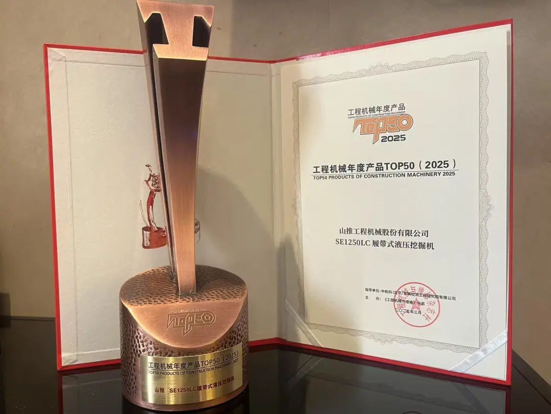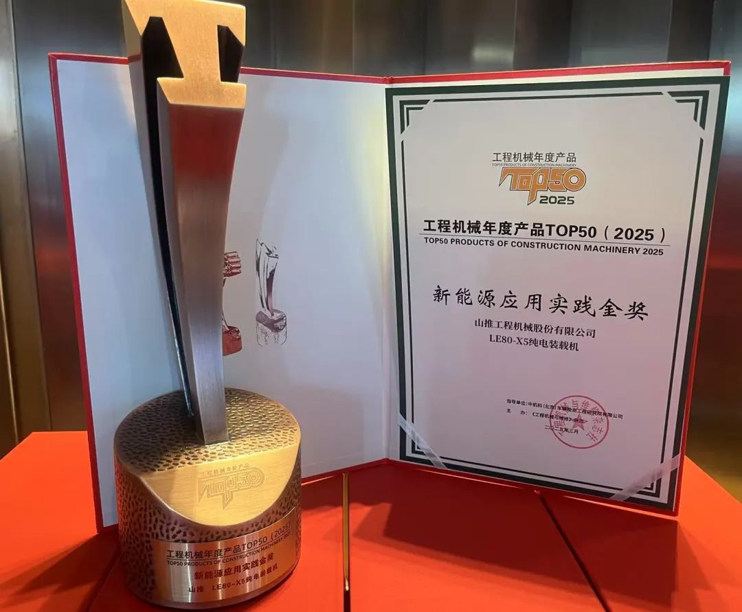 山推LE80-X5純電裝載機榮獲“2025工程機械年度產(chǎn)品TOP50新能源應(yīng)用實踐金獎”。山推SE1250LC 履帶式挖掘機獲“2025工程機械年度產(chǎn)品TOP50獎”,充分彰顯了山推在新能源和礦山領(lǐng)域的成熟技術(shù)與可靠實力。