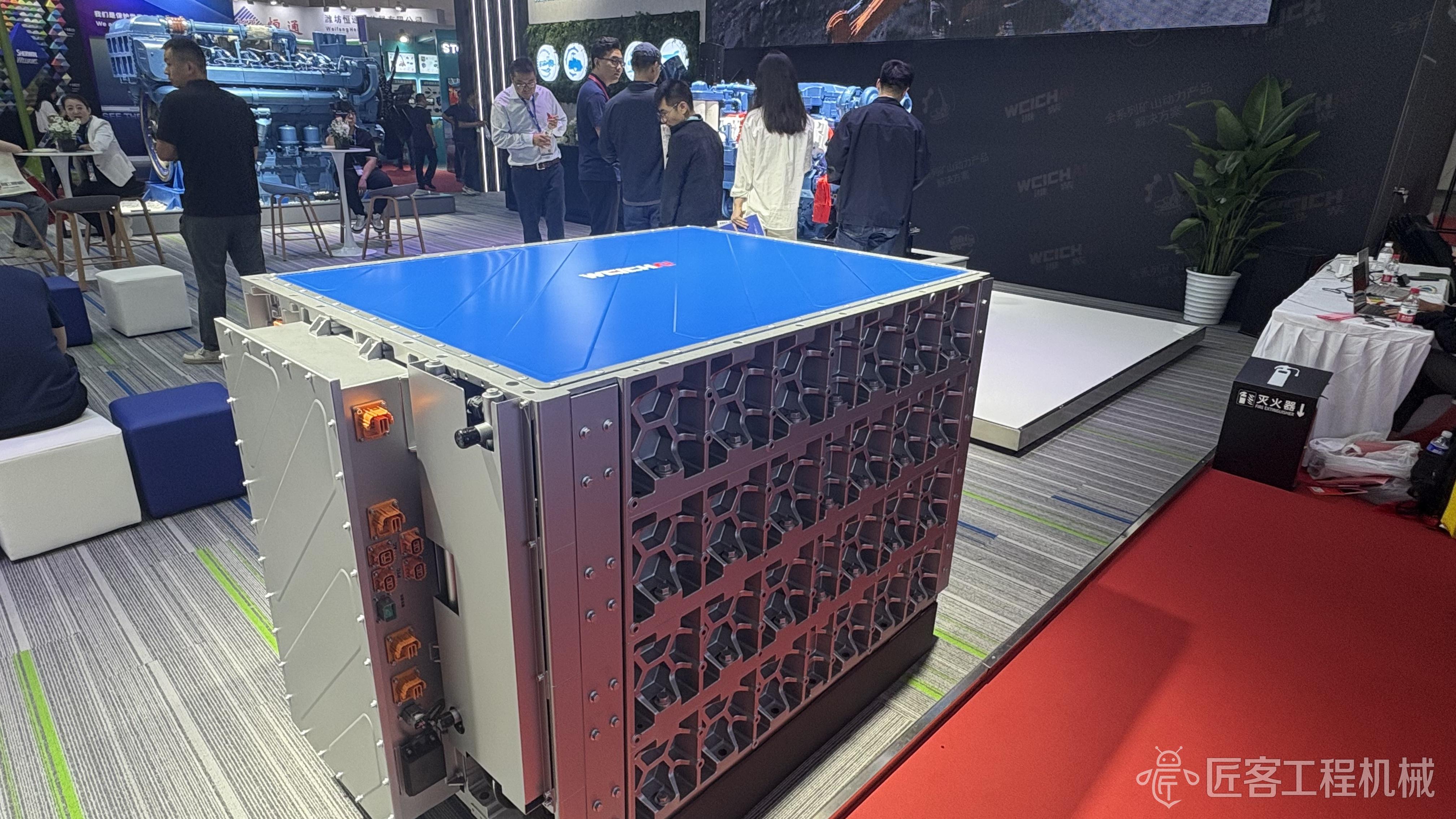 在純電動力領域,濰柴自主研發的CTB(框架一體化技術)電池堪稱典范。該電池從電芯材料配方到一體化框架設計均為自主完成,電量覆蓋300-1200kWh,可適配純電動礦卡、裝載機、挖掘機等裝備。其創新的“4、6層”分層模塊化設計,實現電池、框架、管線路一體化布置,不僅簡化整機裝配流程、降低設計成本,更解決了行業內“裝配難、維修難”等痛點。
